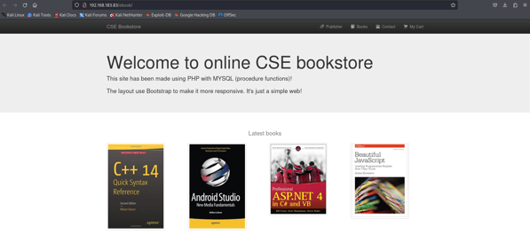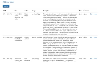 Vemos un portal de libros con un panel de administración (/ebook/admin.php) desde el que se pueden añadir y editar libros.