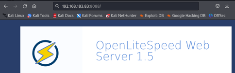 Al acceder a http://192.168.183.83:8088/docs encontramos la versión de OpenLiteSpeed, y en http://192.168.183.83:8088/protected vemos un login.